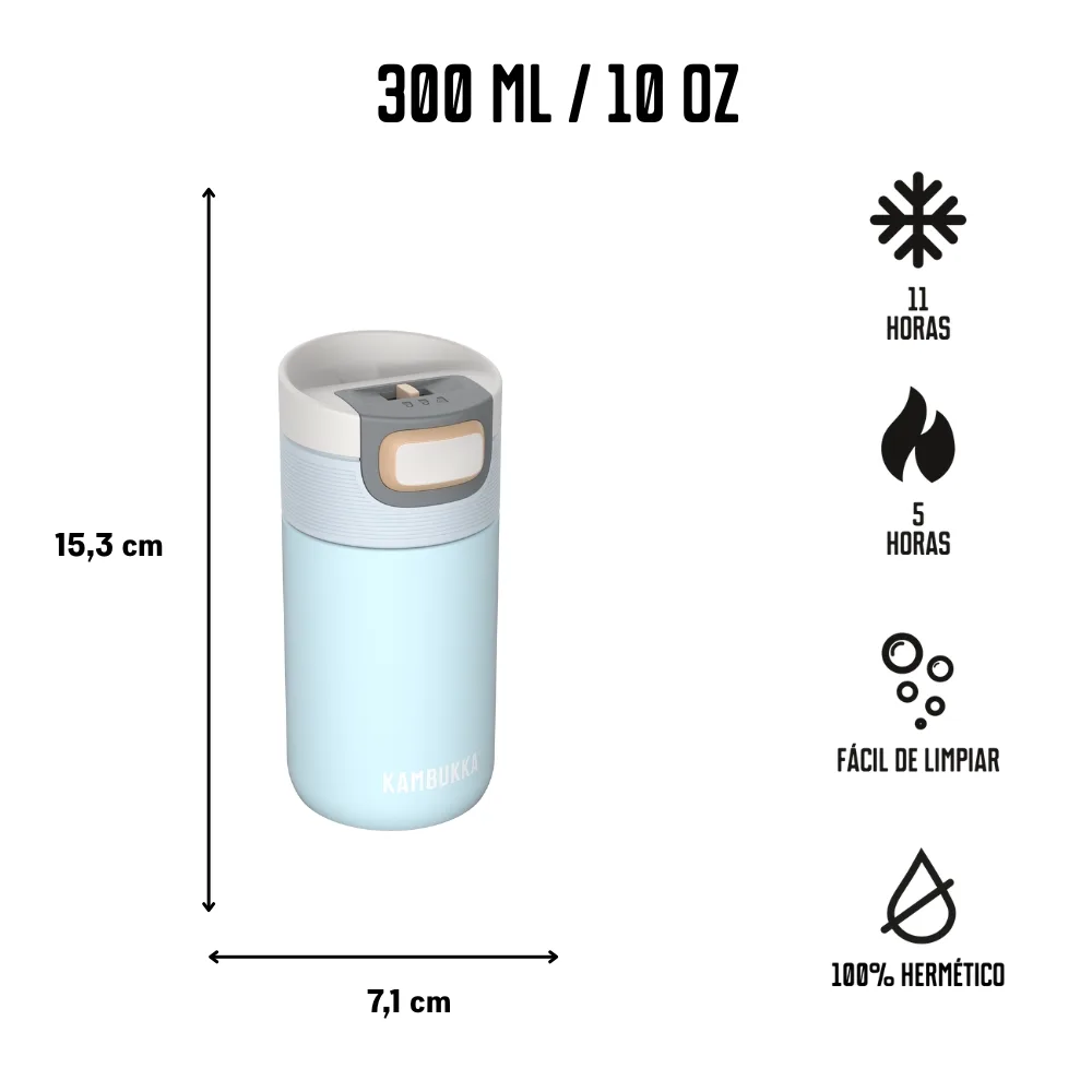 Hay pequeños rituales que definen tu día: ese primer café de la mañana, el té que te reconforta a media tarde. El Vaso Térmico Etna con capacidad de 300ml de Kambukka no es solo un recipiente; es el guardián de esos momentos, diseñado en Bélgica para que disfrutes de cada sorbo como si fuera el primero.Imaginá un viaje en auto sin derrames, o una reunión donde tu café sigue humeante una hora después. Fabricado con acero inoxidable 18/8 de doble pared, el Etna es una fortaleza térmica que mantiene tus bebidas calientes hasta por 5 horas. Su acabado en Breezy Blue no es solo una cuestión de estilo, es una declaración de intenciones: elegís calidad, durabilidad y un diseño que se destaca.La verdadera revolución es su innovadora tapa 3-en-1. Olvidate de las tapas que gotean o son imposibles de usar con una sola mano. Con un simple deslizador, tenés control absoluto. Y cuando el día termina, la limpieza es igual de inteligente. Gracias a nuestra tecnología patentada Snapclean®, el mecanismo interno se extrae en una sola pieza. Se acabaron los rincones imposibles. Es rápido, es profundo, es brillante.El Etna 300ml es más que un vaso térmico. Es una pieza de ingeniería pensada para tu ritmo.