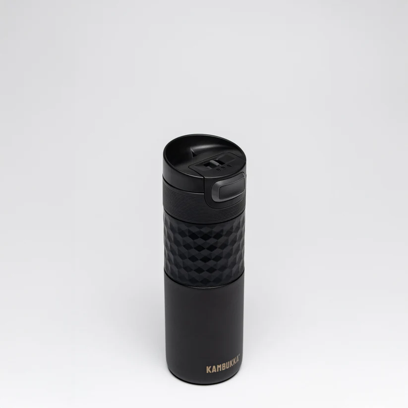 🔹 Tapa 3-en-1: Adaptate al momento. Posición Push (pulsá para tomar, ideal para manejar), Always Open (abierto como una taza para enfriar tu té en la oficina) y Locked (bloqueo total a prueba de fugas para tirarlo al fondo de tu mochila junto a la notebook sin estrés).