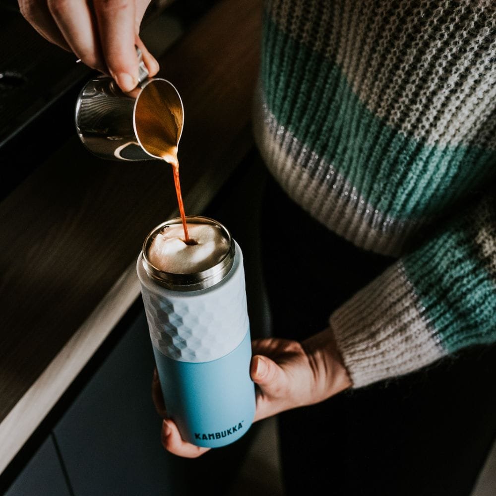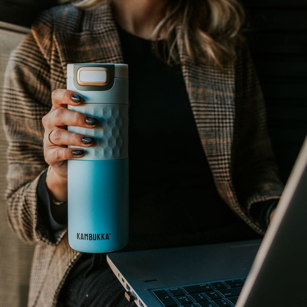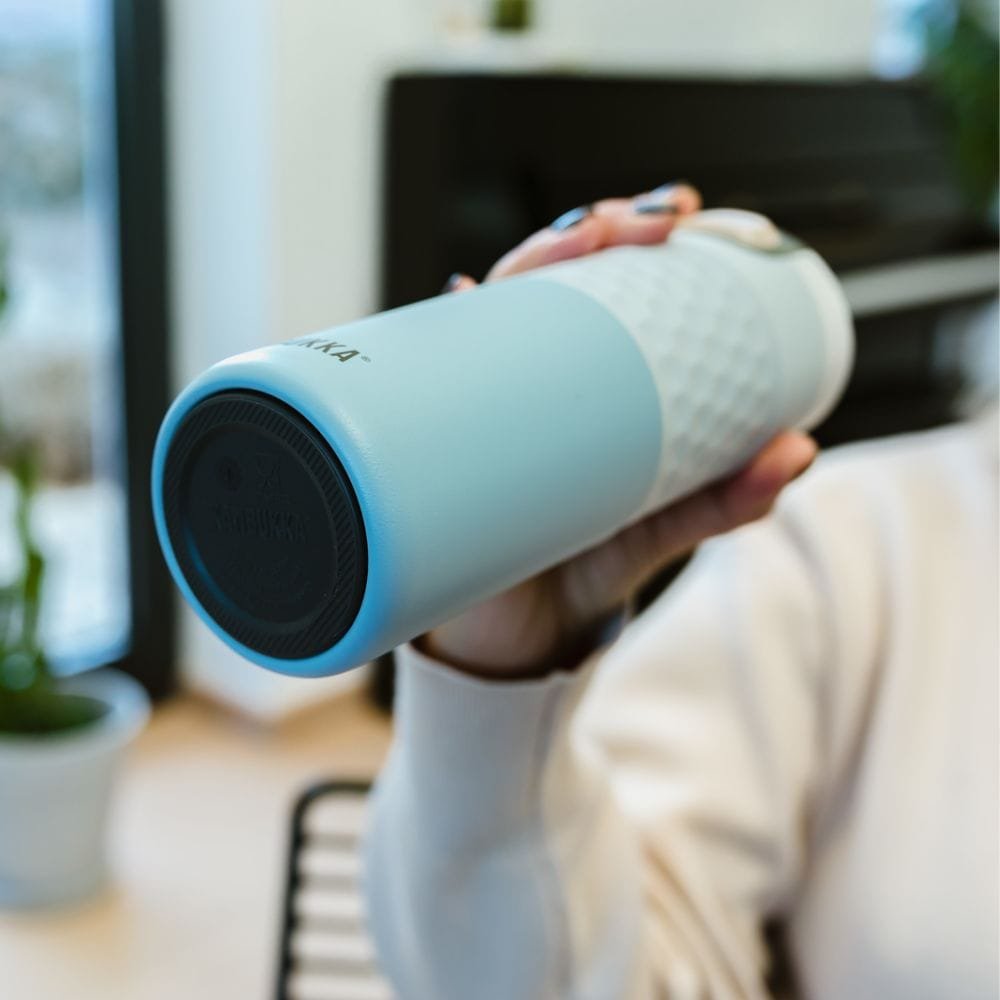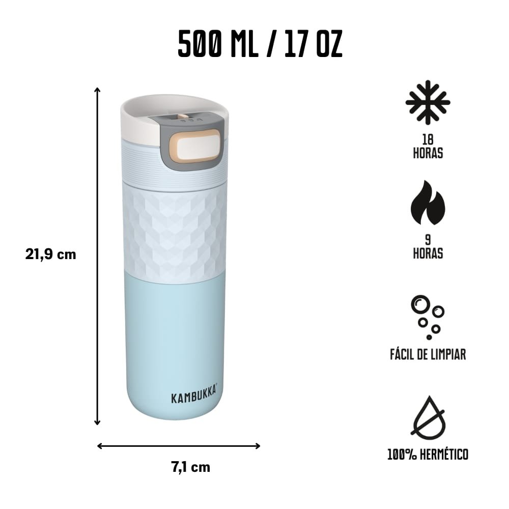 Diseñado en Bélgica para las jornadas más exigentes, el Etna Grip color Breezy Blue es una verdadera proeza térmica. Su doble pared de acero inoxidable 18/8 mantiene tus bebidas calientes durante 9 horas y frías por 18 horas. Ya sea en un largo viaje por la ruta o durante un día lleno de reuniones, tu bebida estará siempre lista y a la temperatura perfecta.